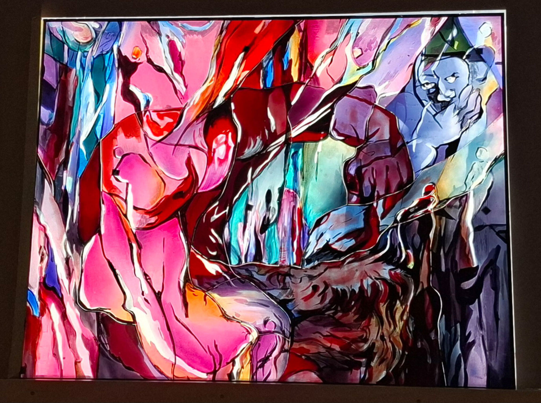 Es wird die vorhandenen Buntglasfenster der Kirche St Cosmae et Damiani um einen sehr ein-drücklichen Beitrag ergänzen. Die Enthüllung am Ostersonntag passt gut, da das Kunstwerk nicht nur die menschliche Verstrickung in Schuld und Gewalt darstellt, sondern auch die Hoff-nung auf die Überwindung, auf Erlösung und ewigen Frieden.